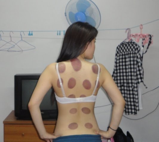 Another highlight of my week include fire cupping--a Chinese traditional massage/medicinal technique that basically involves setting a glass cup on fire, then putting it on your back. The hot air inside the cup creates a vacuum that suctions to your skin. The end result is a very dark and painful bruise on your back. According to Chinese traditional explanations, the dark coloration is from the violent expulsion of excess qi (air) from your body. Your body has a balance of hot and cold air, and when your body has too much of one or the other, you will feel very tired, restless, agitated, or even sick. Fire cupping will expel the imbalance in your body (排毒). I think an adequate western explanation for why people might like fire cupping is that it will stretch and move deep muscles that normally don't get stretched. Although the bruises may hurt, but a few days after fire cupping, you will feel like your back muscles are more relaxed (although this could also be the result of the 2 hour massage I got before the fire cupping).